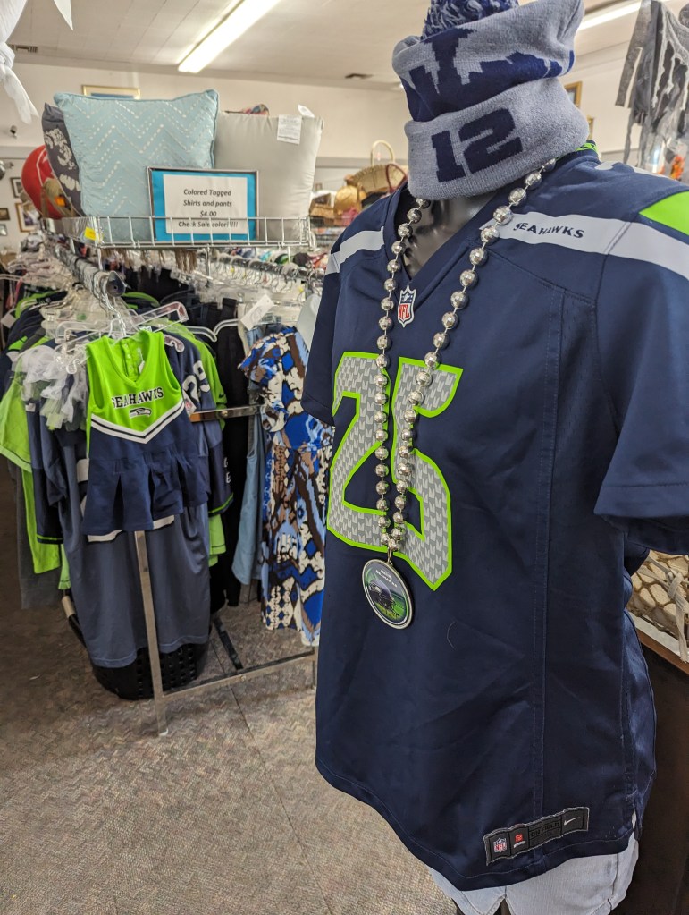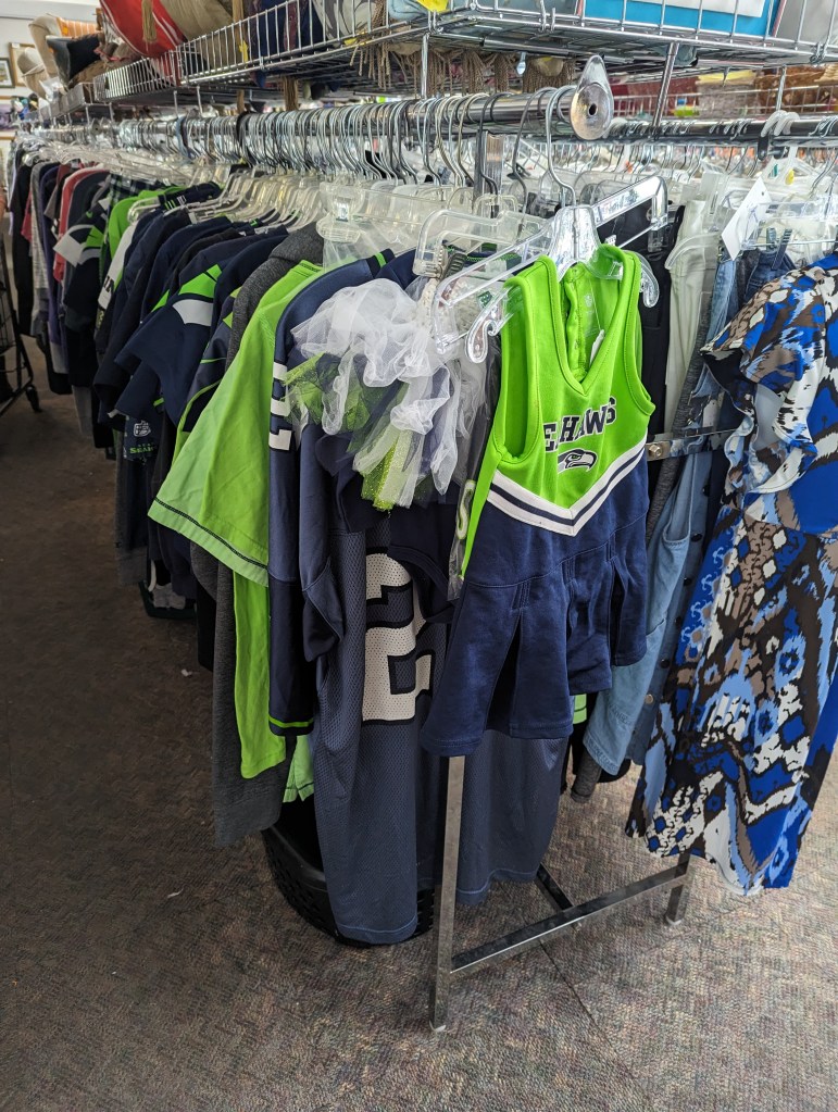 Tons of sports stuff. Go Hawks! Go Sounders! Get it while it’s here!